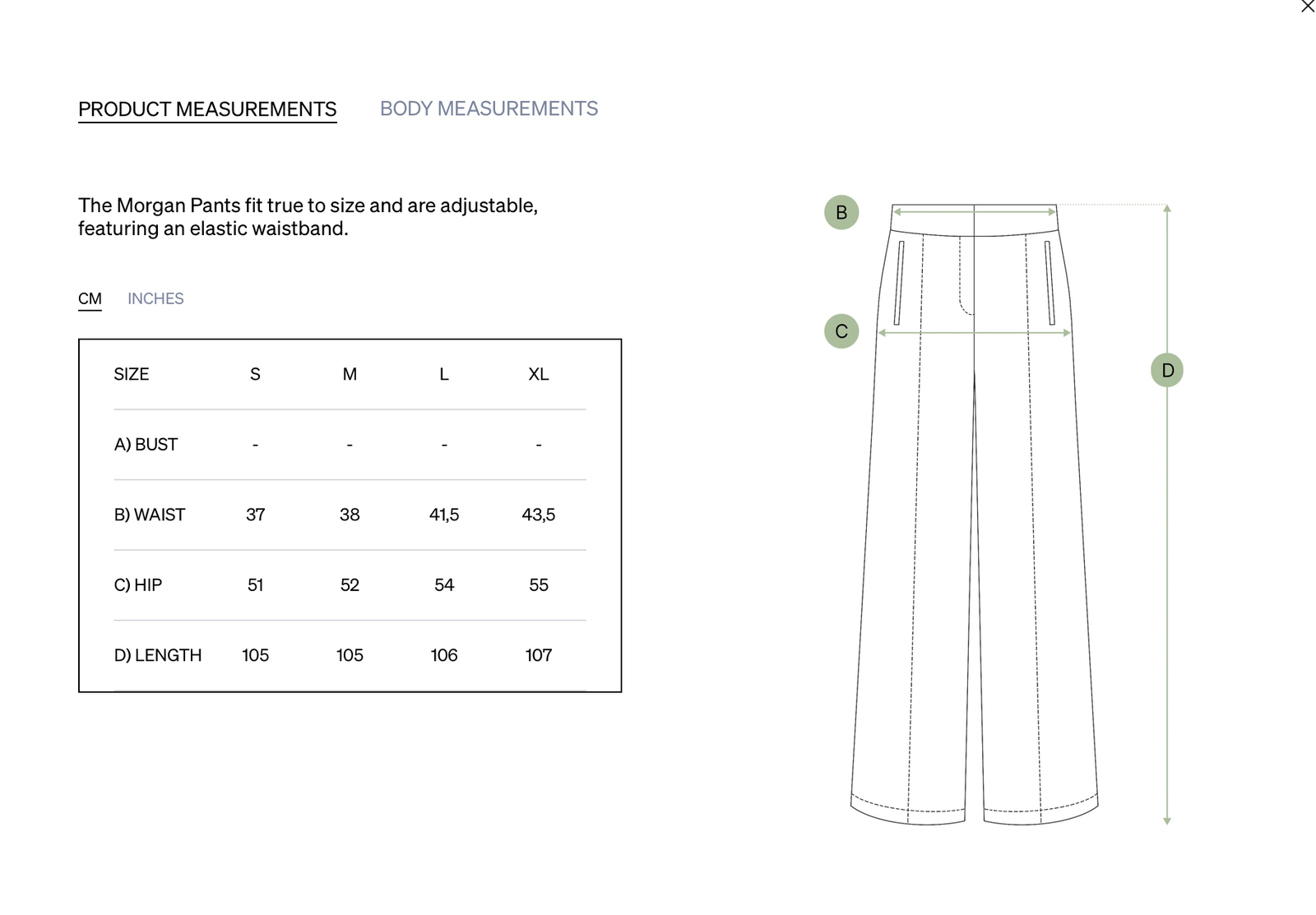Modelis pasižymi laisvu, komfortišku siluetu ir elastiniu juosmeniu nugaros dalyje. Šoninės įleistinės kišenės ir priekyje einanti siūlė vizualiai išgrynina liniją, suteikdamos įvaizdžiui struktūros, išlaikant lengvą, neįpareigojantį charakterį.